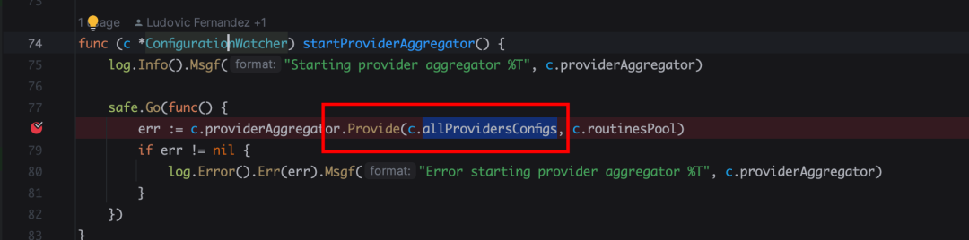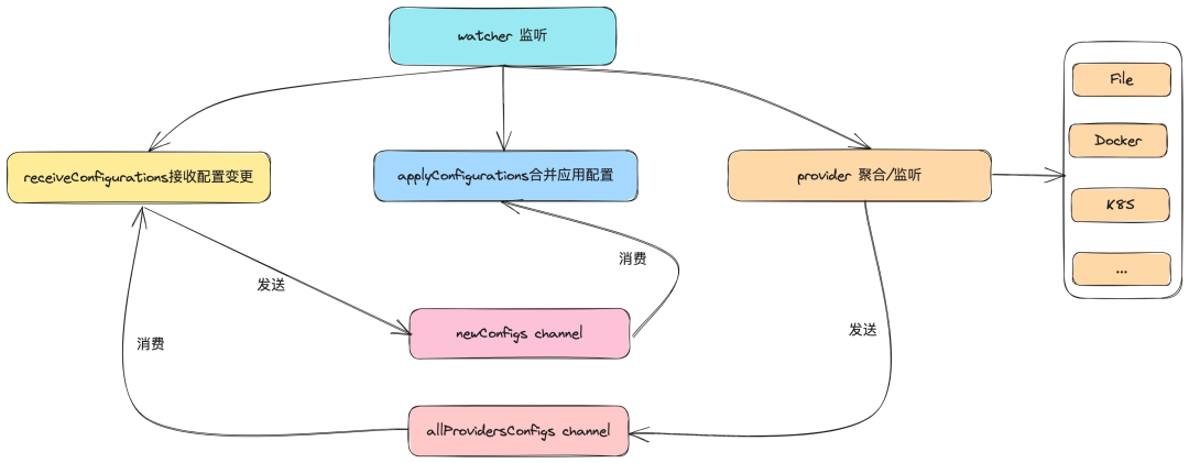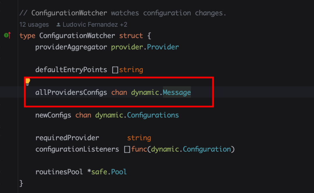 查看 ConfigurationWatcher 结构体的定义,找到allProvidersConfigs,定义的就是我们发送到的 channel 了。