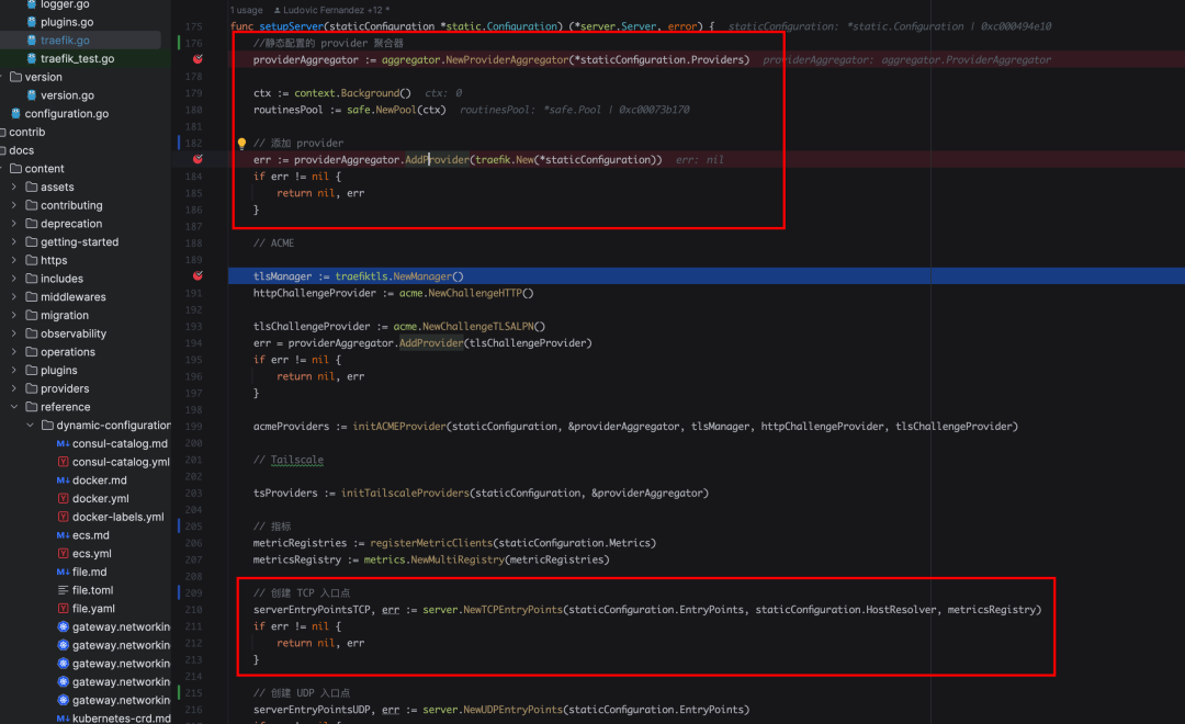 然后是关于server.NewTCPEntryPoints,用于构建入口点的逻辑,这个很关键。