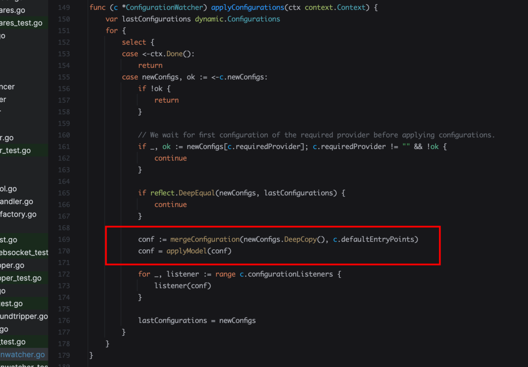applyConfigurations 则是收到新的配置之后,合并然后应用配置,具体合并的细节就不看了,忽略他。