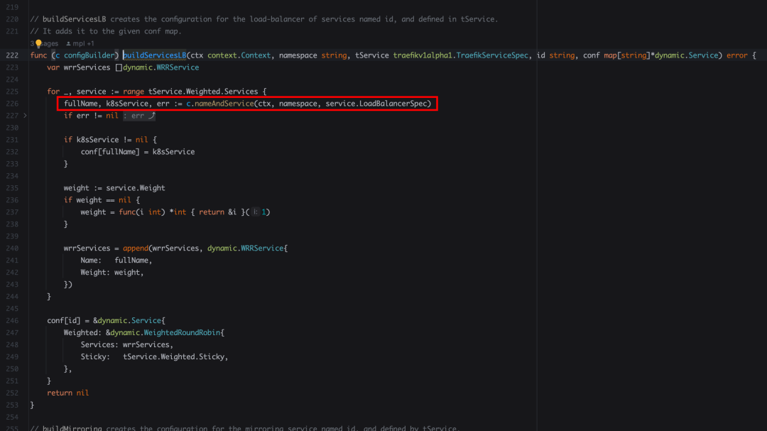 接着往下看buildServicesLB的方法,其实和 service==1 的情况一样,只是循环去调用了nameAndService方法而已。
