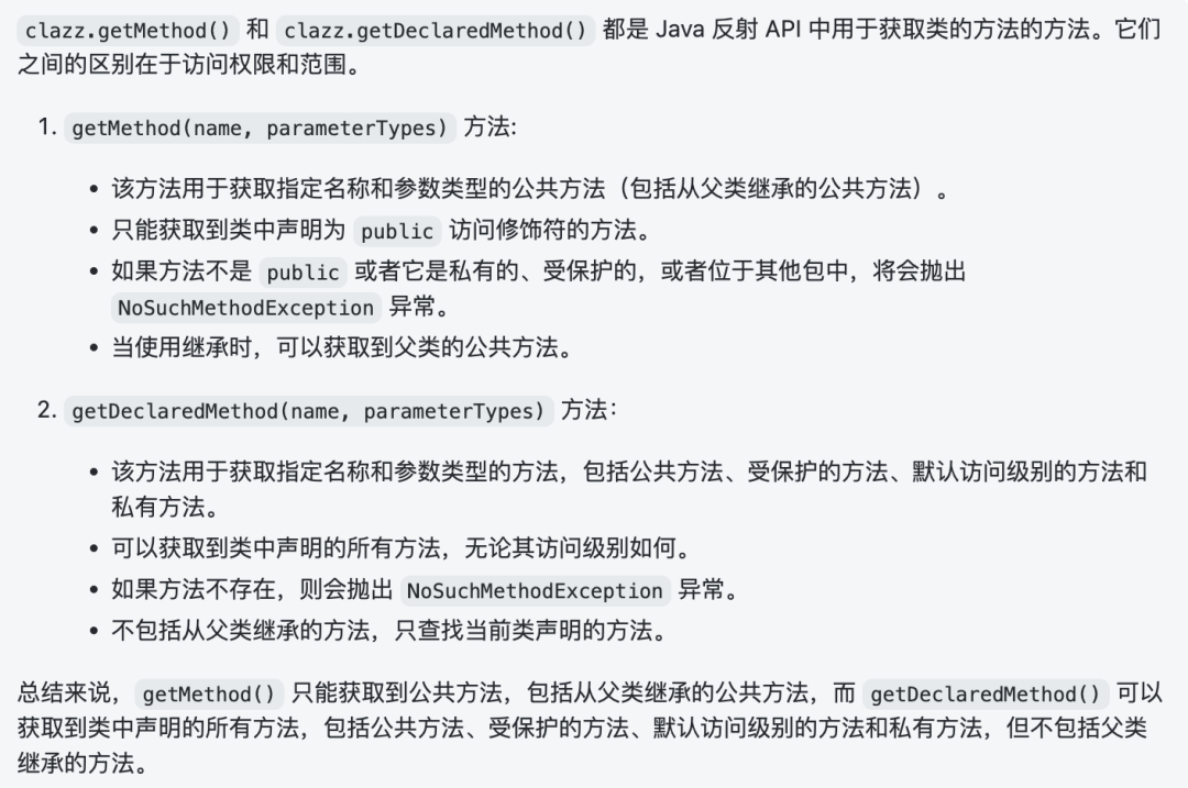 clazz.getMethod() 和 clazz.getDeclaredMethod()的区别: