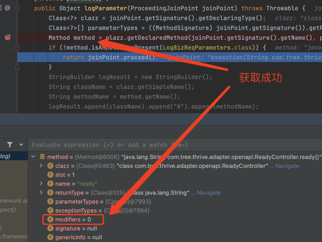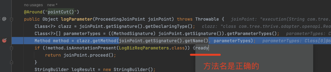Method method = clazz.getDeclaredMethod(joinPoint.getSignature().getName(), parameterTypes);