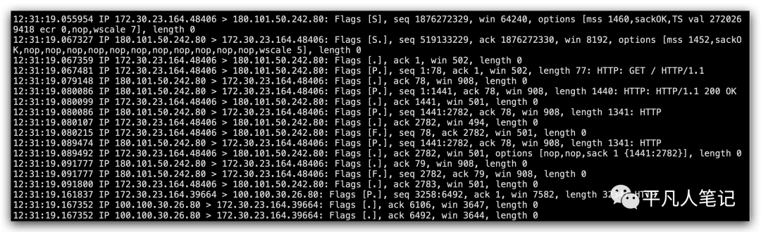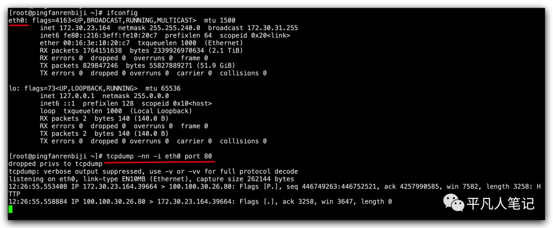 -i 是iterface接口,eth0是网卡;抓80端口,抓从eth0网卡出去的访问80端口的网络包。