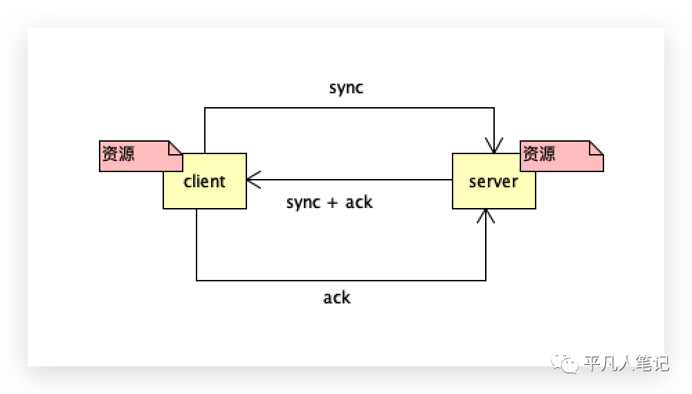 服务端回复一个sync的确认包,客户端再回复一个ack。