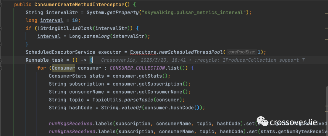 启动一个定时任务,定期从这些 consumer 中获取指标数据。