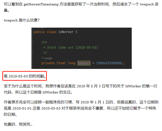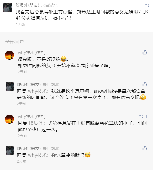 周一的时候不是发了《在开源项目中看到一个改良版的雪花算法,现在它是你的了。》这篇破文章嘛。