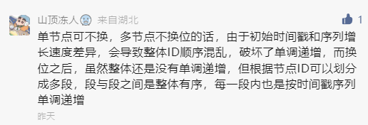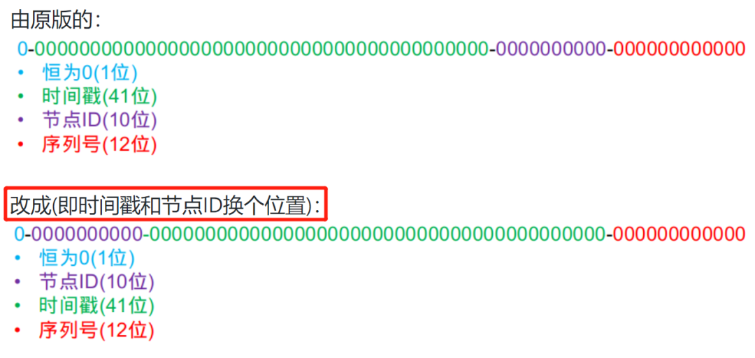 还有一个问的也很多的问题:为什么在改良版本里面,非要把时间戳和节点 ID 换位置,不换行不行?