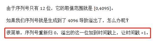 意思就是这一毫秒内,序列号从 0 递增到了 4095。