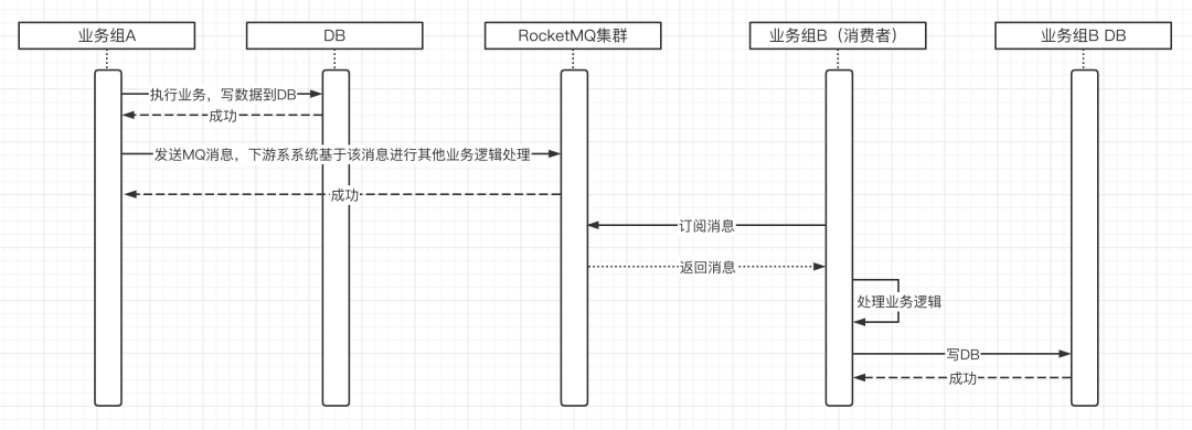 我们结合业务方使用消息中间件,一般的使用场景如下图所示: