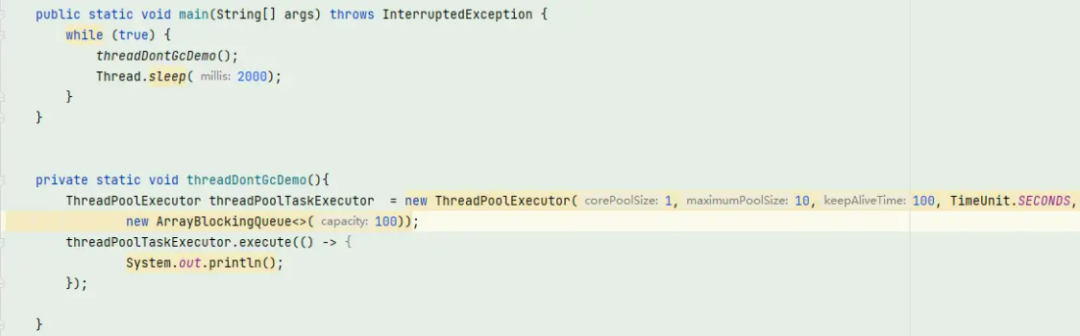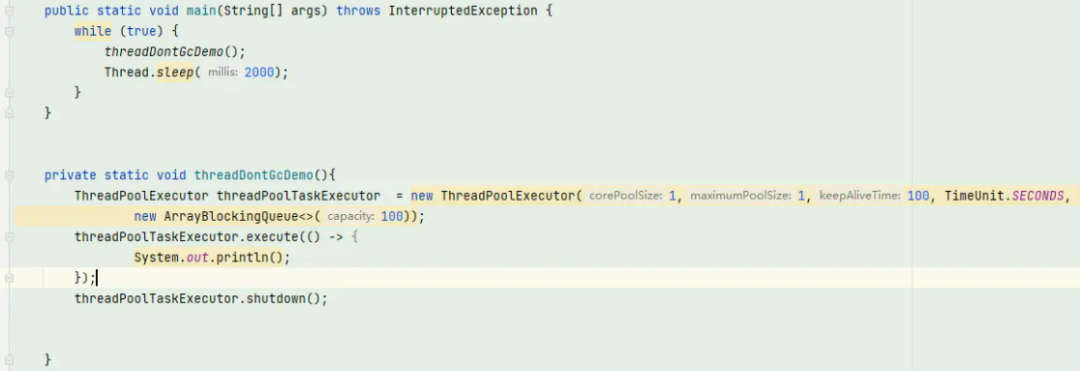 我简单的跑了个 demo,循环的去 new 线程池,不调用 shutdown 方法,看看线程池能不能被回收