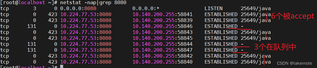 - Send-Q表示(acceptCount)全连接队列的容量。