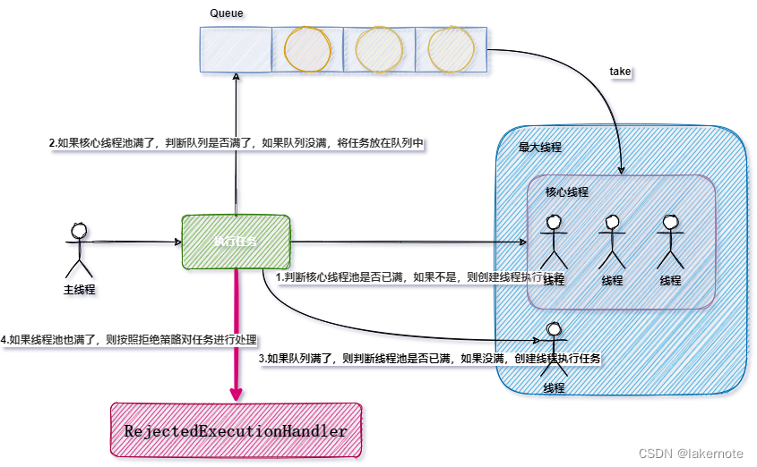 JDK 线程池流程:minThreads --> queue --> maxThreads --> Exception