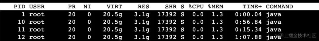 出现具体线程的资源使用情况,表格里的pid代表线程的id,我们称他为tid