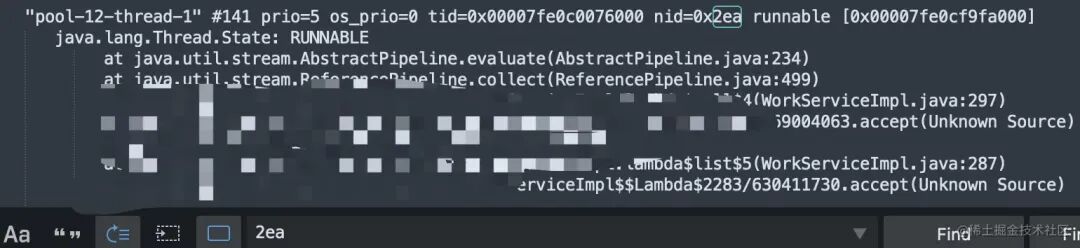 把文件下载到了本地,打开查看编辑器搜索2ea,找到nid为2ea的堆栈信息