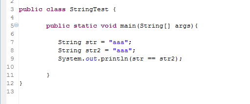 这是因为,创建字符串对象str2时,字符串池中已经存在"aaa"这个对象,直接把对象"aaa"的引用地址返回给str2,这样str2指向了池中"aaa"这个对象,也就是说str和str2指向了同一个对象,因此语句System.out.println(str == str2)输出:true。