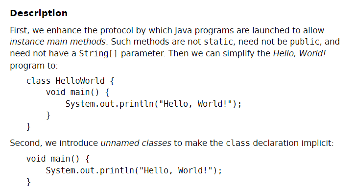 所以他提议,为了 students 和 beginner 更快更好的入门 Java,应该简化成这样,