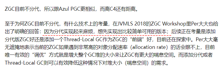 就是 2018 年,在 JDK 11 的里面,刚刚开始宣传 ZGC 的时候,就有人问:ZGC 为什么不进行分代啊?
