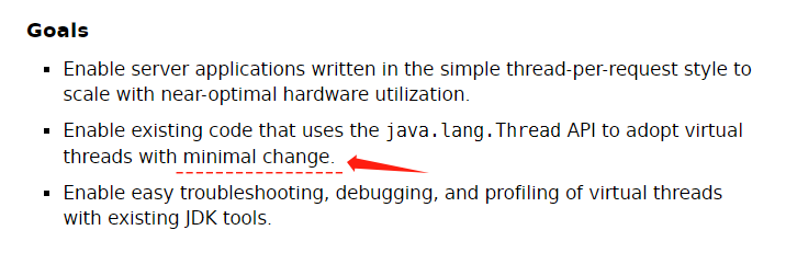 官方表示,使用 java.lang.Thread API 的现有代码,只需做 极少改动(minimal change)即可启用虚拟线程。