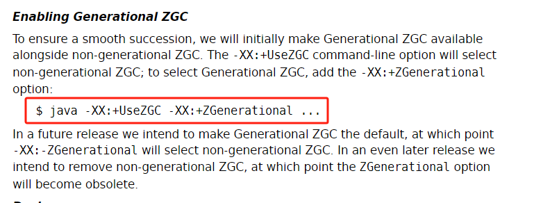 在更晚的版本中,官方会考虑删除 ZGC 的不分代 GC 功能,到时候 ZGenerational 这个配置就会被一并“优化”。