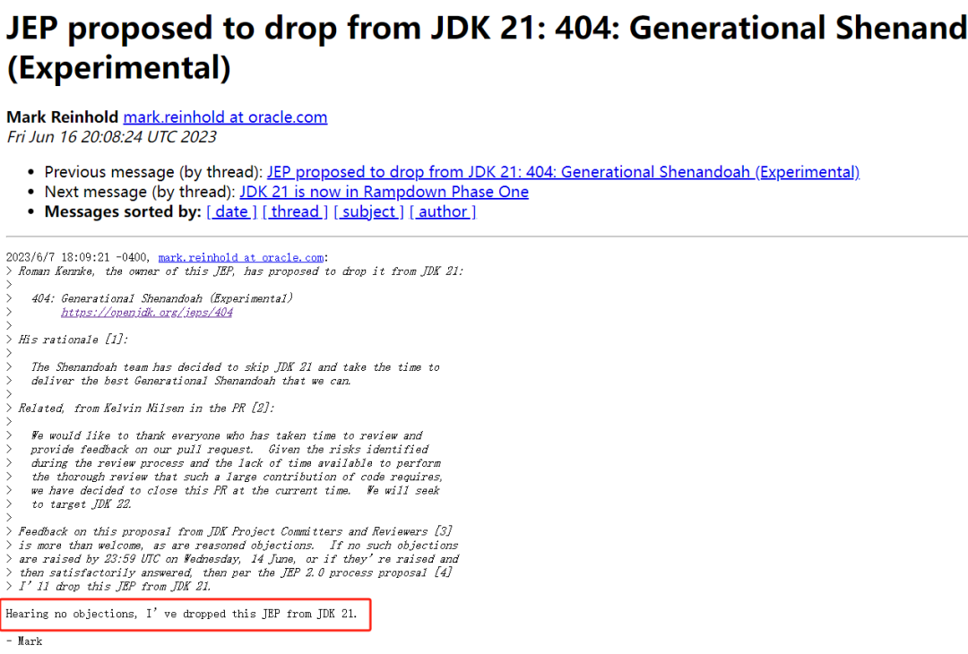 根据官方的消息,最开始 JDK 21 的版本中是包含了 Shenandoah 的。