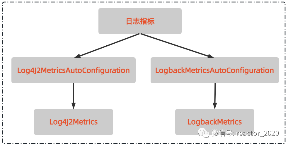 日志指标自动装配配置类主要包括两个:LogbackMetricsAutoConfiguration和Log4J2MetricsAutoConfiguration,从名字很明显是对使用率最高的两种日志实现框架logback和log4j2。