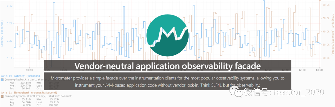 「官网对Micrometer定位:Vendor-neutral application observability facade。」通过提供抽象、强大、易用的抽象门面接口,可以轻松的对接包括Prometheus、JMX、Influxdb等在内的近20种监控系统,它的作用和 Slf4j 类似,只不过 Slf4j 关注日志,而 Micrometer 关注应用指标(application metrics)。