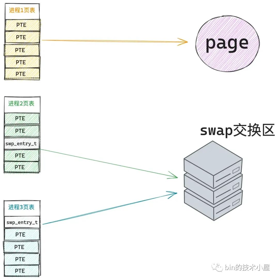 首先内核会通过 pte_to_swp_entry 将进程页表中的 pte 转换为 swp_entry_t