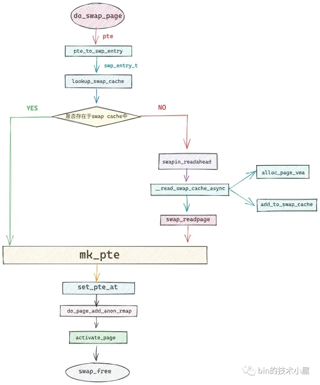 当我们明白了前面介绍的这些背景知识之后,再回过头来看内核完整的 swap in 过程就很清晰了