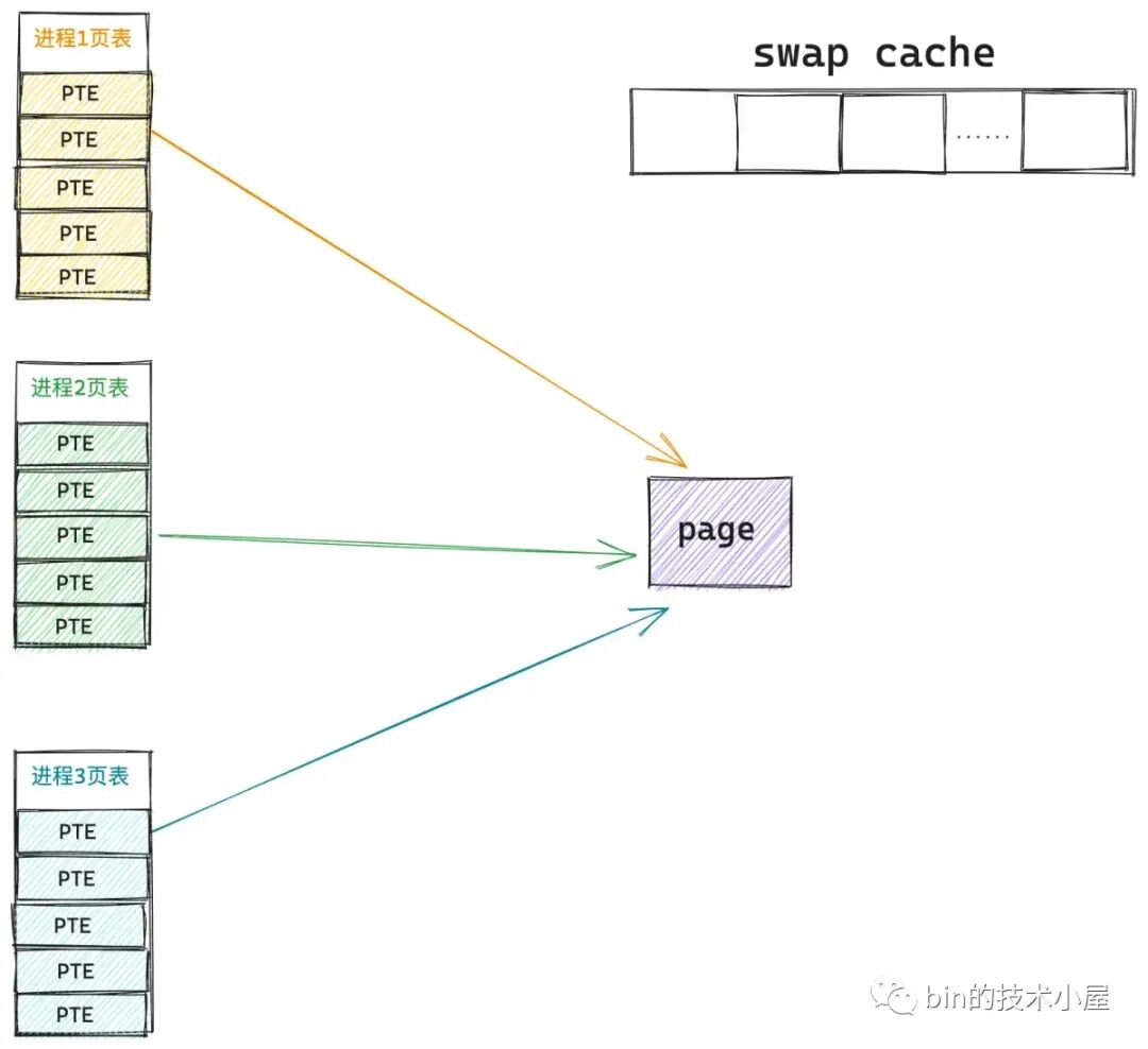 // 首先利用 swp_entry_t 到 swap cache 查找,看内存页已经其他进程被 swap in 进来