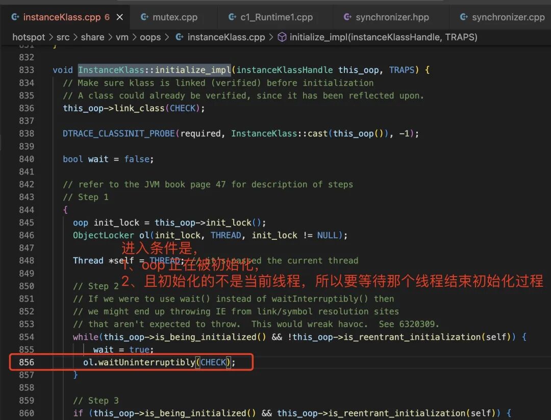 所以我们要知道它现在想初始化什么类,以及这个类正在被哪个线程初始化。