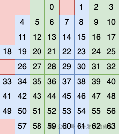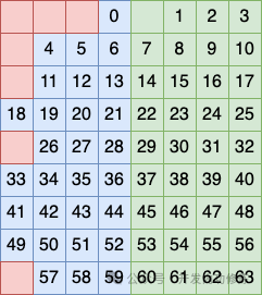 第二个行分组方式是将 2、3、7、8 行看做一个分组,在这个分组中再安排一个比特作为校验码