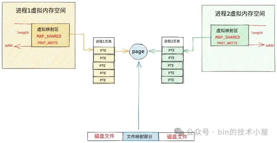MAP_SHARED 表示共享映射,通过 mmap 映射出的这片内存区域(MappedByteBuffer)在多进程之间是共享的,一个进程修改了共享映射的内存区域,其他进程是可以看到的,用于多进程之间的通信。