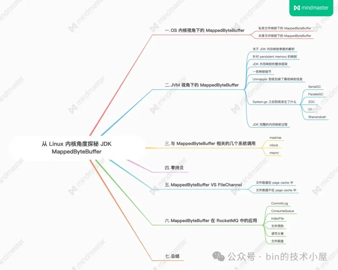 本文从 OS 内核,JVM ,中间件应用三个视角带着大家全面深入地拆解了一下关于 MappedByteBuffer 的方方面面,在文章的开始,我们先是在 OS 内核的视角下,分别从私有文件映射,共享文件映射两个方面,介绍了 MappedByteBuffer 的映射过程以及缺页处理。还原了 MappedByteBuffer 最为本质的面貌。