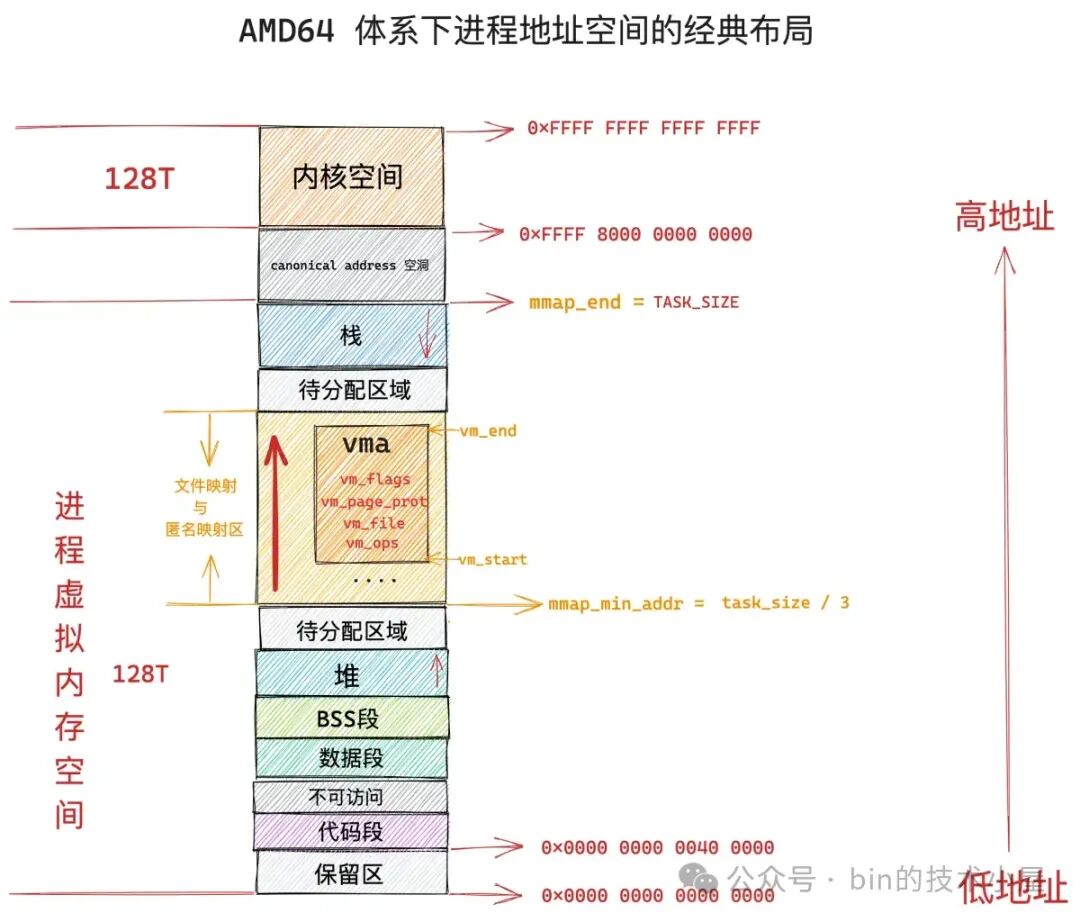 无论是私有映射的方式还是共享映射的方式,内核在对文件进行内存映射之前,都需要通过 get_unmapped_area 函数在 JVM 进程虚拟内存空间中的文件映射与匿名映射区里寻找一段还没有被映射过的空闲虚拟内存区域。