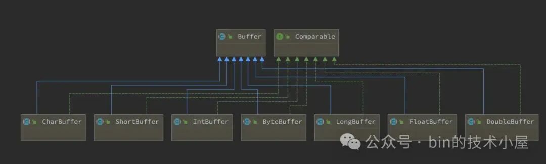 在之前的文章《一步一图带你深入剖析 JDK NIO ByteBuffer 在不同字节序下的设计与实现》 中,笔者为大家详细剖析了 JDK Buffer 的整个设计体系,从总体上来讲,JDK NIO 为每一种 Java 基本类型定义了对应的 Buffer 类(boolean 类型除外)。