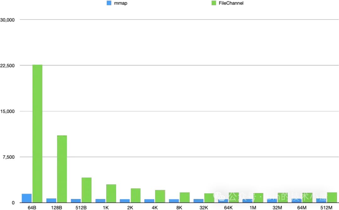 最后笔者从映射文件数据在与不在 page cache 中这两个角度,详细对比了 MappedByteBuffer 与 FileChannel 在文件读写上的性能差异,并从内核的角度分析了具体导致两者性能差异的原因。
