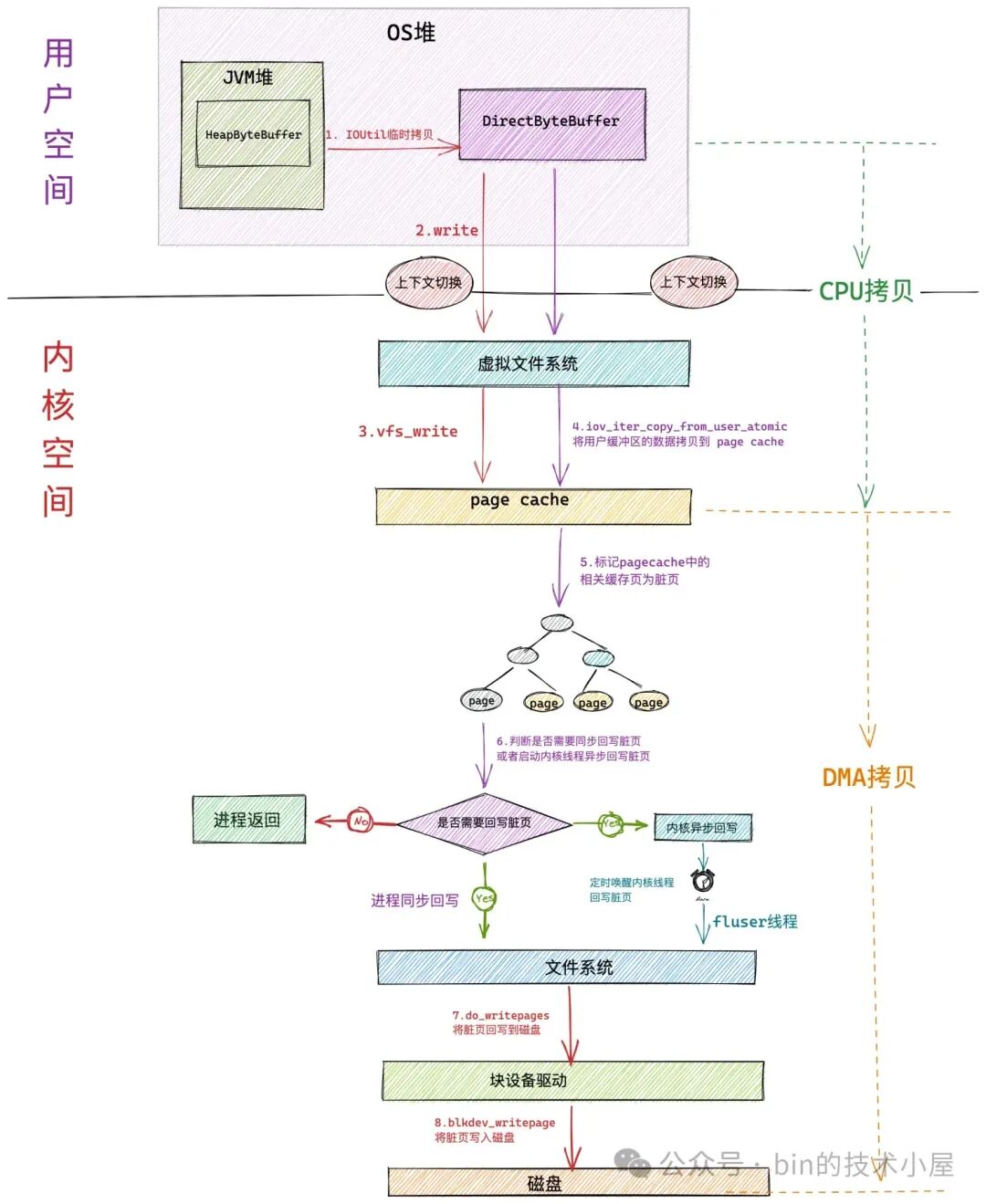 无论是通过 MappedByteBuffer 还是 FileChannel 对文件进行写入,当系统中的脏页积累到一定量的时候,都会对其写入文件的性能造成非常大的影响。另外脏页不及时回写还会造成数据丢失的风险。