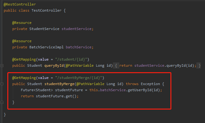 假设我们有一个学生信息查询接口,调用频率非常的高。对于这个接口我们需要做请求合并处理。