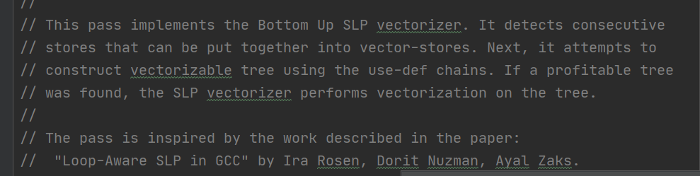 LLVM 中的 SLP vectorization ,是受Loop-Aware SLP in GCC(by Ira Rosen, Dorit Nuzman,Ayal Zaks) [4]这篇论文启发来实现的。
