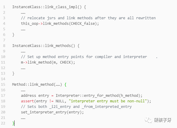 那Java中的每个方法,何时与这些入口点进行绑定的呢?在链接阶段。看代码